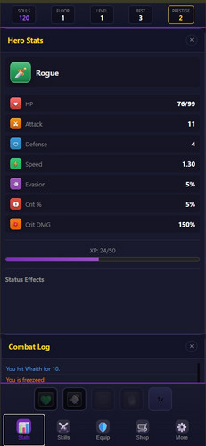 Game eventually softlocks since your character will just sit still at a chest and enemies will get stuck on each other and never approach you. Also Backstab is insanely OP and makes for the usual issue these types of games has. Which is that defensive stats are completely useless. You just spam damage to keep up with enemy HP scaling and oneshot everything before it hits you.